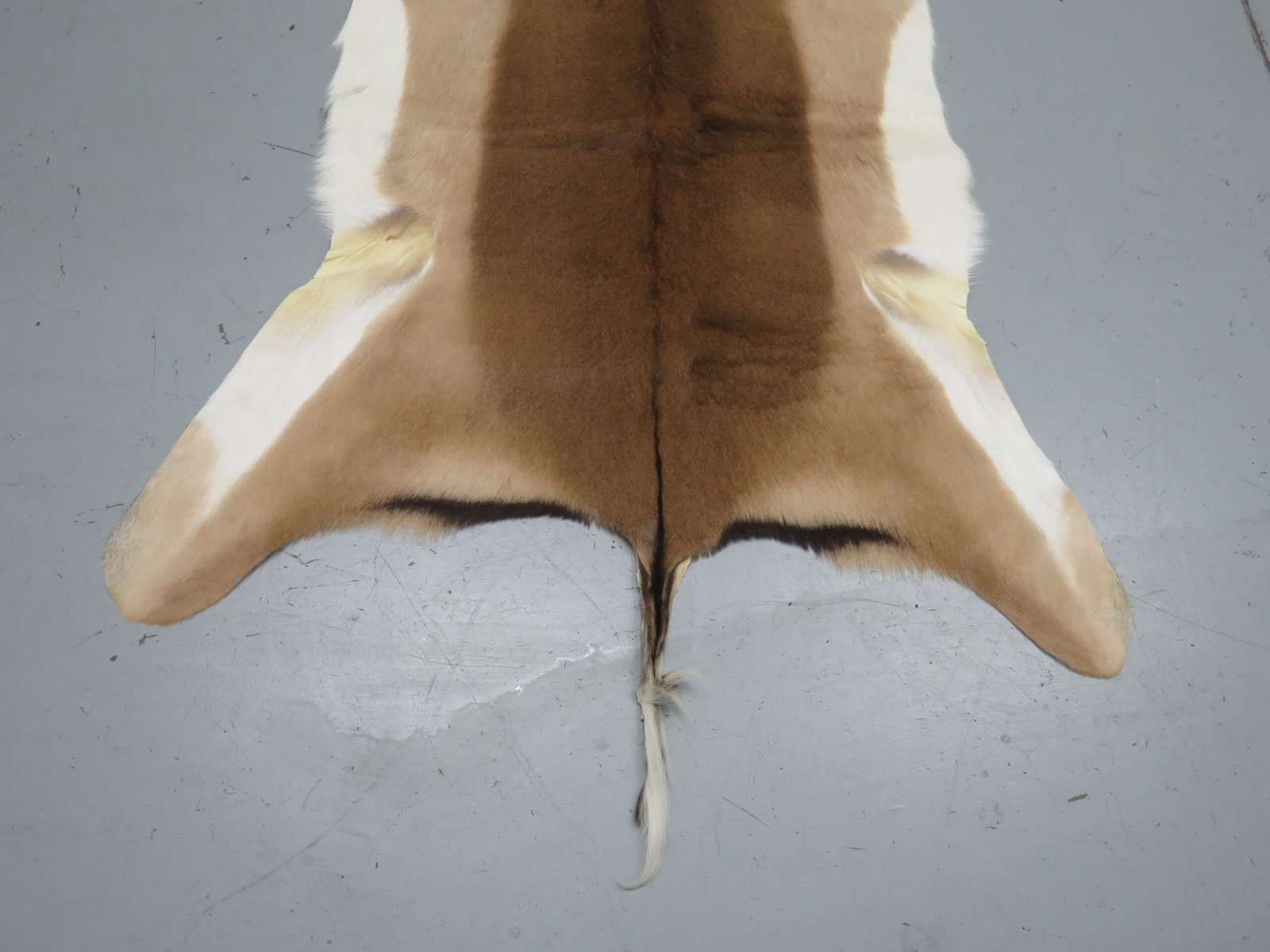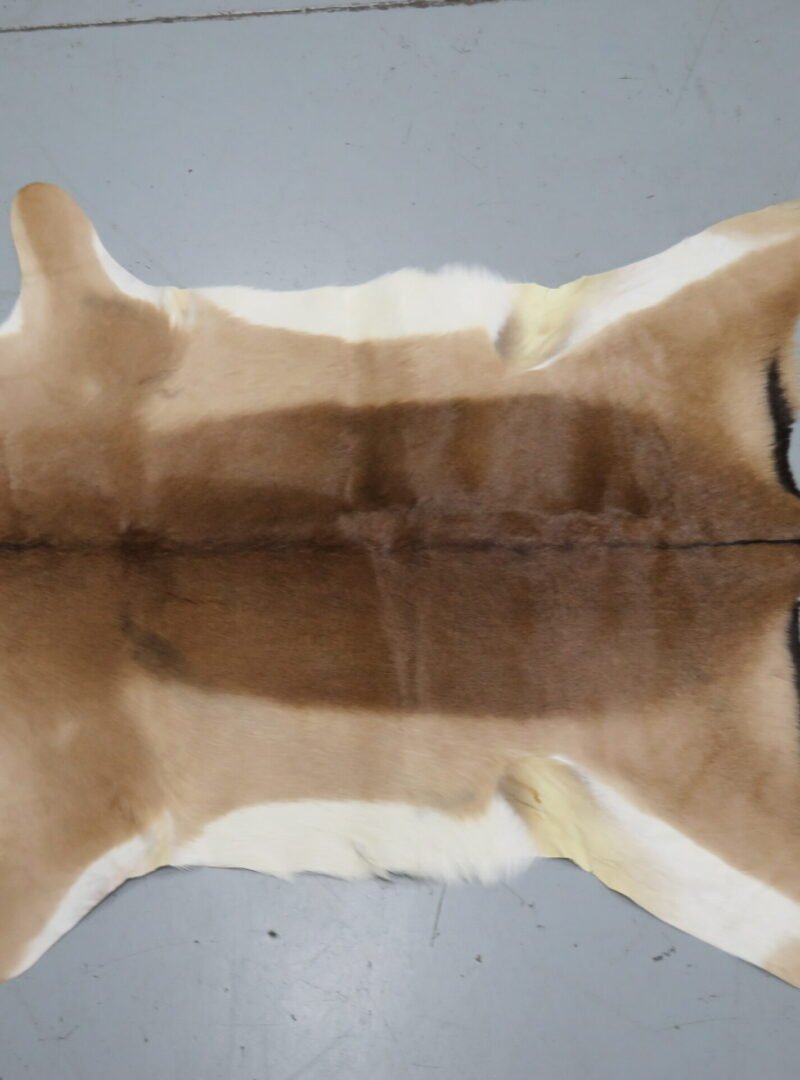 This Impala skin (or hide) looks fantastic. We don’t see this African skin too often. This skin is well-maintained, professionally tanned, and has excellent color and markings. Good thickness and length of hair in excellent condition (see attached photographs). Put this taxidermy skin on the floor or over a couch.