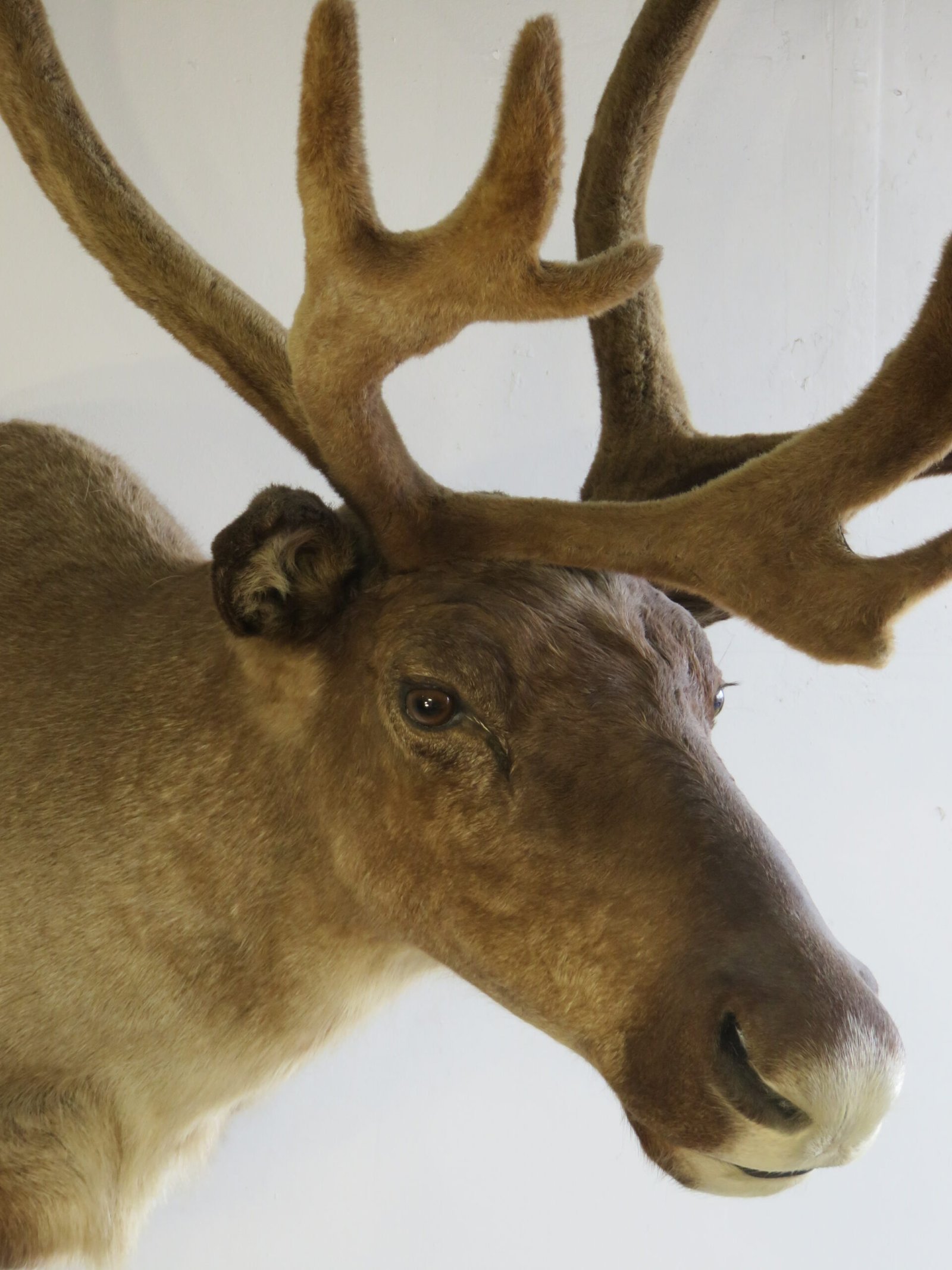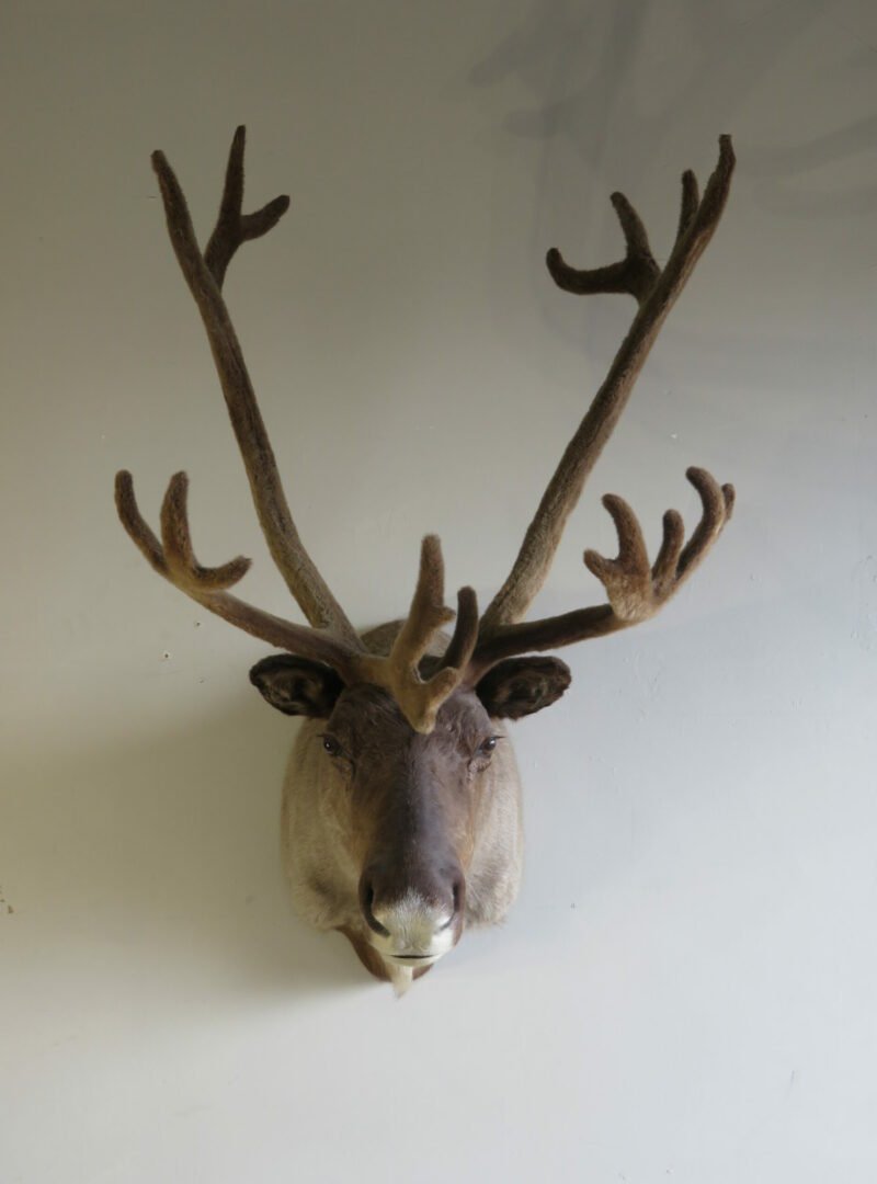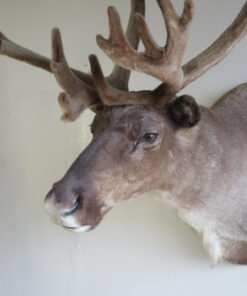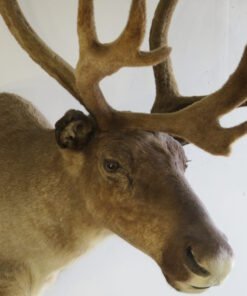 This is a stunning illustration of an Alaskan barren-ground caribou with its velvet still on! A fantastic, realistic representation of the species that would complement any collection of large game species found in North America. This mount has a sly, forward-looking stance. Excellent hair thickness and coloring with a pleasingly uniform color pattern. Even while it’s not a huge, trophy-sized rack, it’s nonetheless a fantastic specimen with exquisitely maintained velvet. We have designated this mount as “Premier” because we believe it is an excellent representation of the species deserving of praise and display.