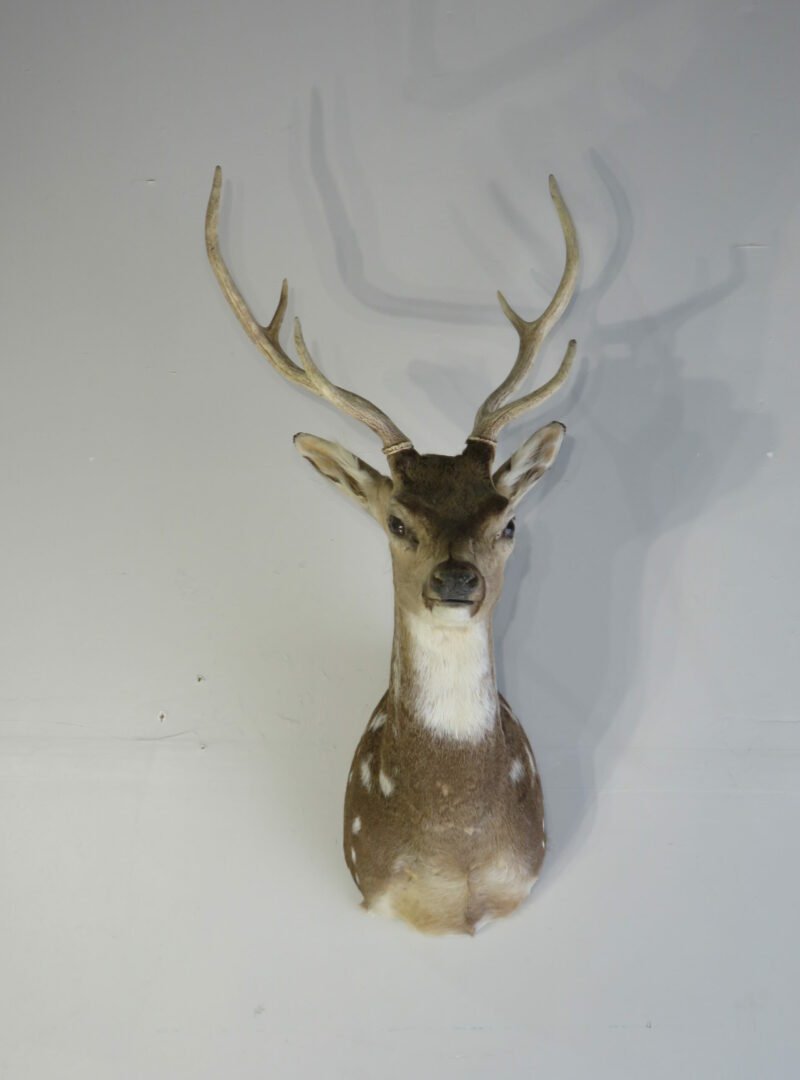 Axis Deer Mount For Sale has an erect, head-turned posture and a respectably large pair of antlers. This mount’s workmanship is subpar, and one of the horns is a little loose. Apart from that, he is something that may be displayed in a man cave or cabin. A more elusive species that might be included in an exotic collection.