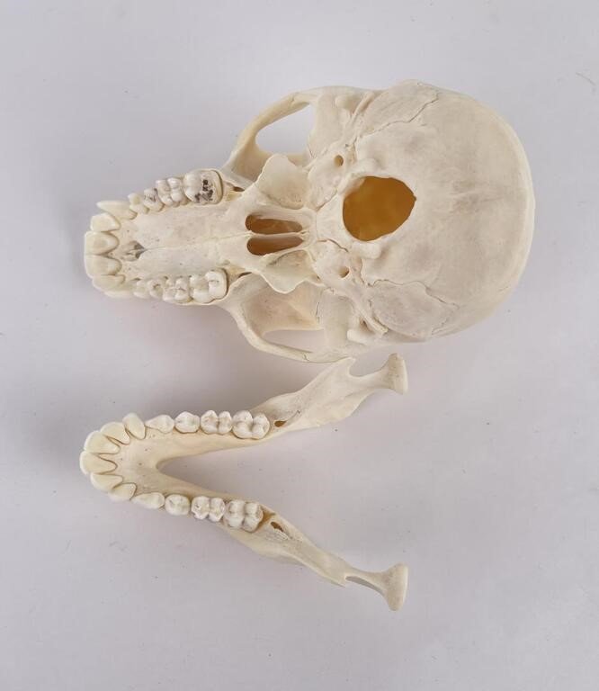 Baboon Skull For Sale is the skull of a Chacma Baboon, often called the Cape Baboon. It is clean and white. With all of the teeth still present and minimal bone structural deterioration, the skull is in excellent condition (see attached photographs). The entire skull is 6 3/8 inches in length and 3 4/8 inches in width.
