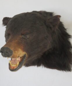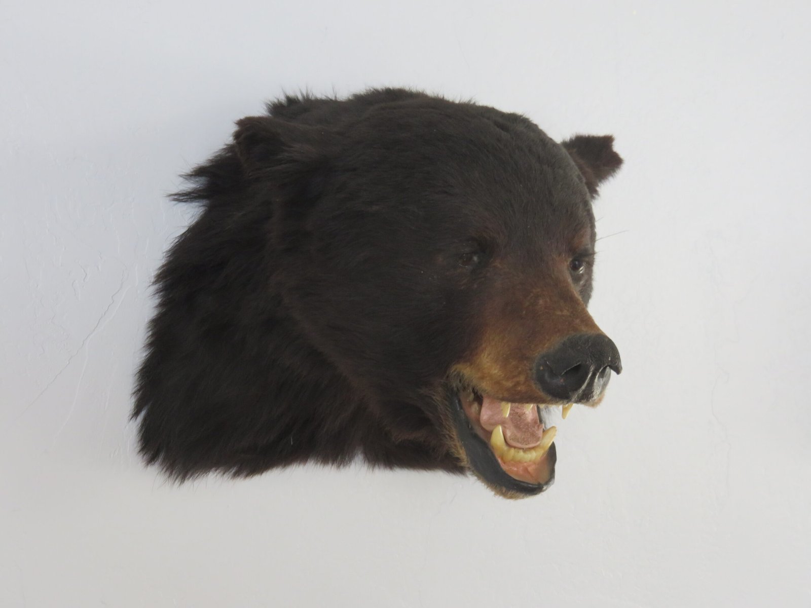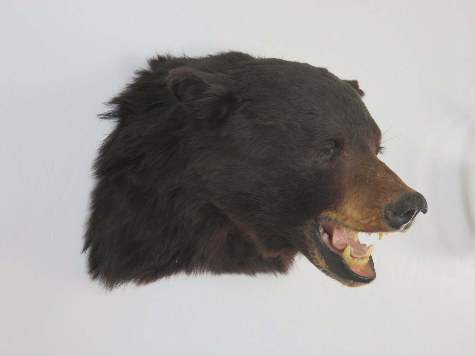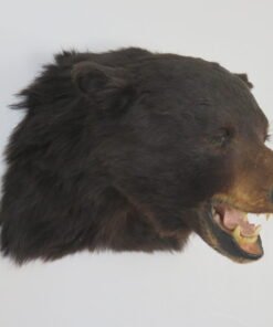 Black Bear Taxidermy For Sale. This black bear taxidermy mount from the antique class is excellent. Head forward and mouth open in a natural position. Excellent black fur coloring (see pics attached). Install this mount to put on display in your house, cabin, lodge, or place of business.