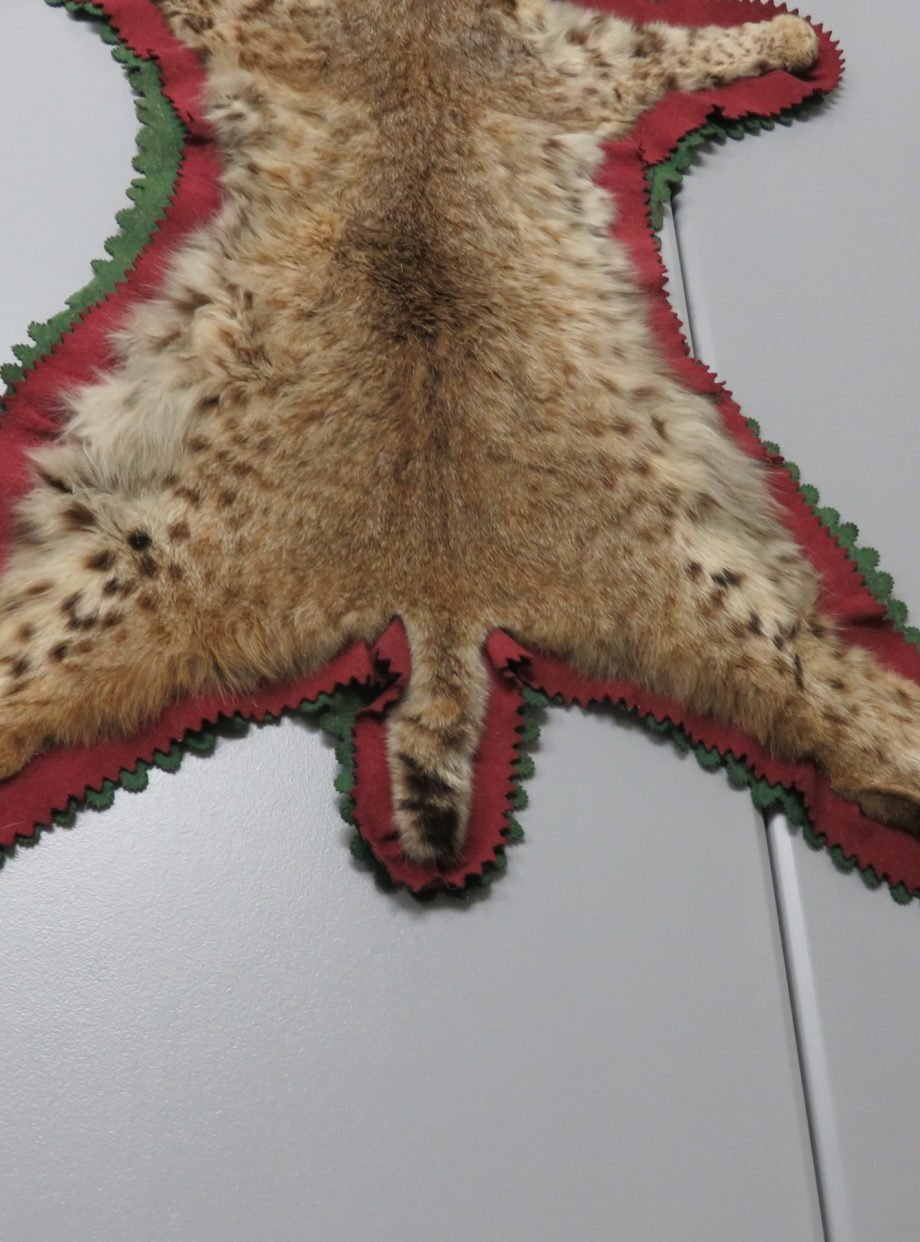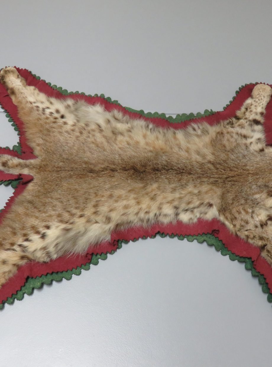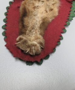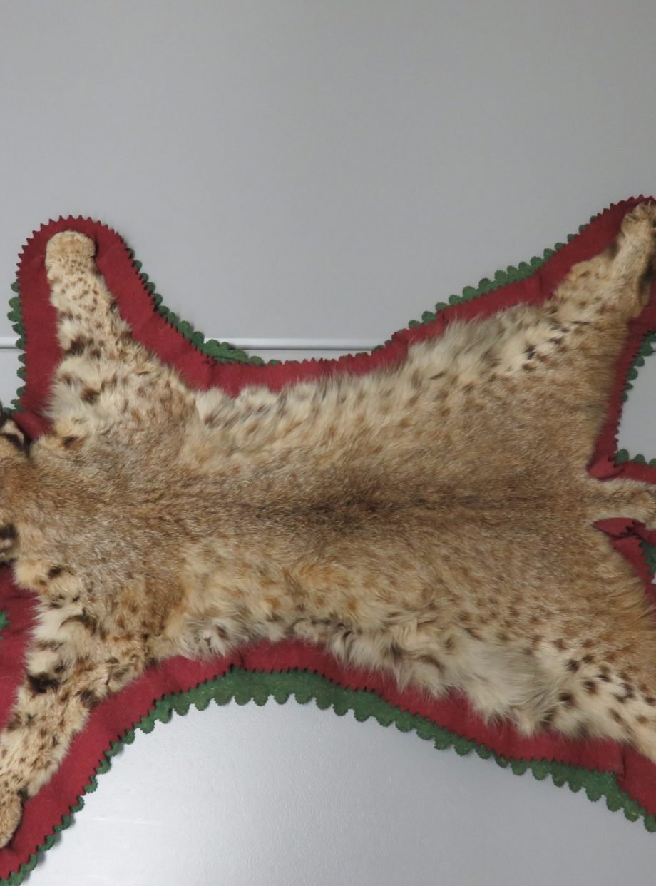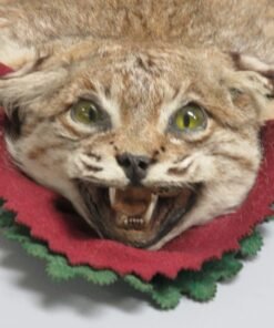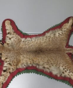 This Western Montana bobcat taxidermy rug is a good size. This is a fantastic example of the species for exhibition because of its excellent colors and thick hair. The double felt lining of this piece comprises layers of green and burgundy. Mount has an open-mouthed taxidermy head. A lost canine teeth is the listing’s only drawback (see attached photographs). Apart from that, it’s a lovely rug that would look fantastic in a house, cabin, lodge, or workplace.