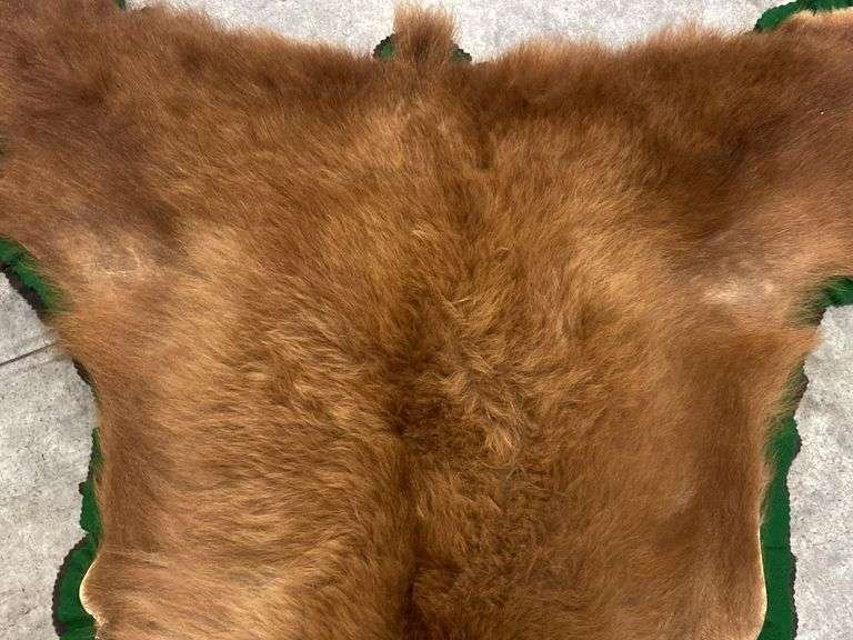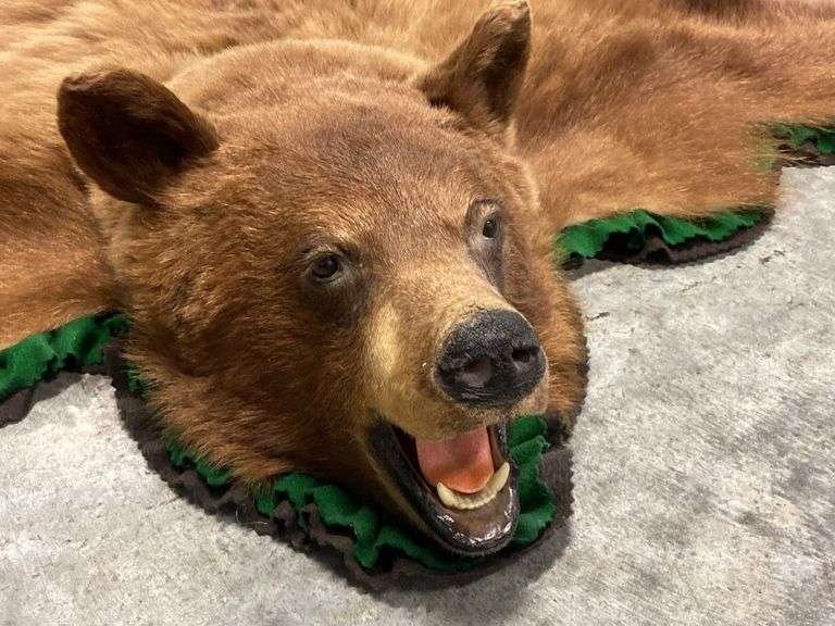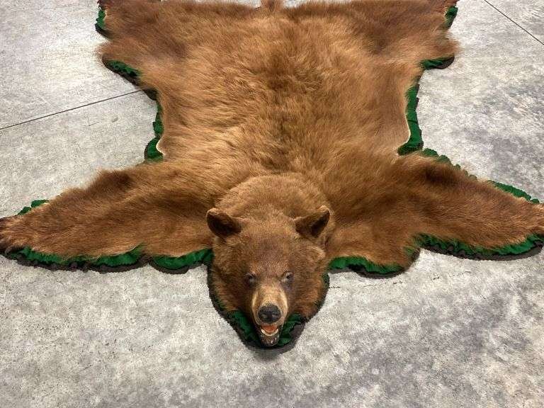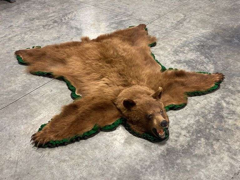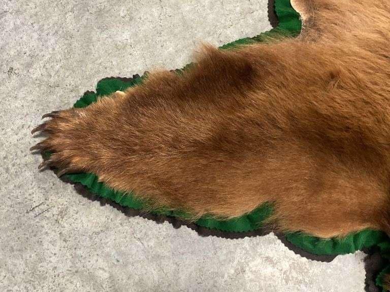 Brown Bear Rug For Sale The bear is black and in the brown stage. Gorgeous rug with a black and green double-felted backing. The bear’s mouth is open. Excellent overall condition, with no damage to the snout, ears, or claws.