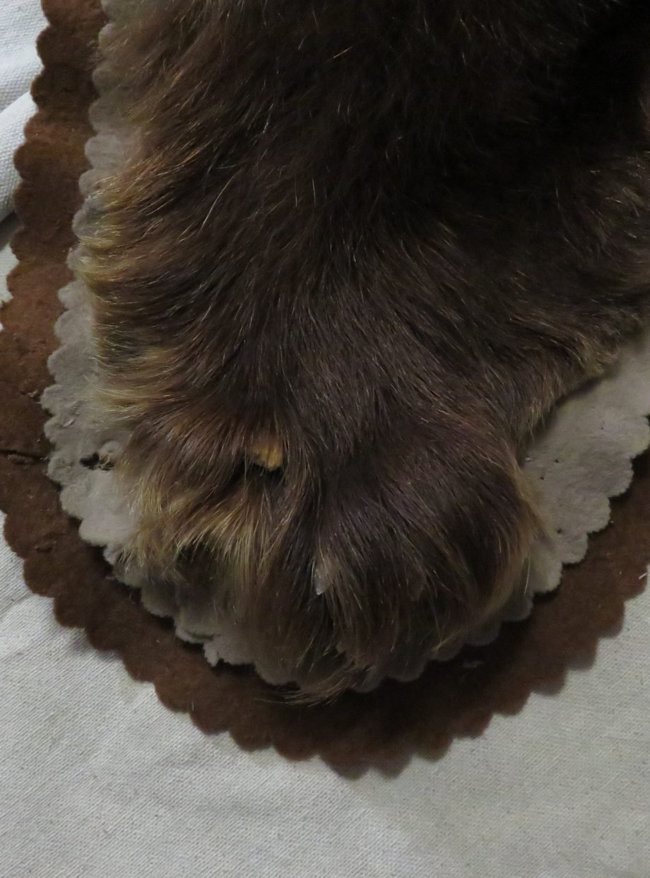 We recently purchased this unique bear skin rug. There is both good and bad news regarding this item. First, the negative The fact that the bear’s head was not affixed to the rug makes this bear skin unique. This item’s feet and claws have sustained some damage, aside from the peculiar mount style. (See the pictures attached.) To demonstrate that each foot has missing toes or claws, I included images of each paw. Twelve claws remain. Therefore, it is not possible to restore this rug to a high standard of quality or appearance.