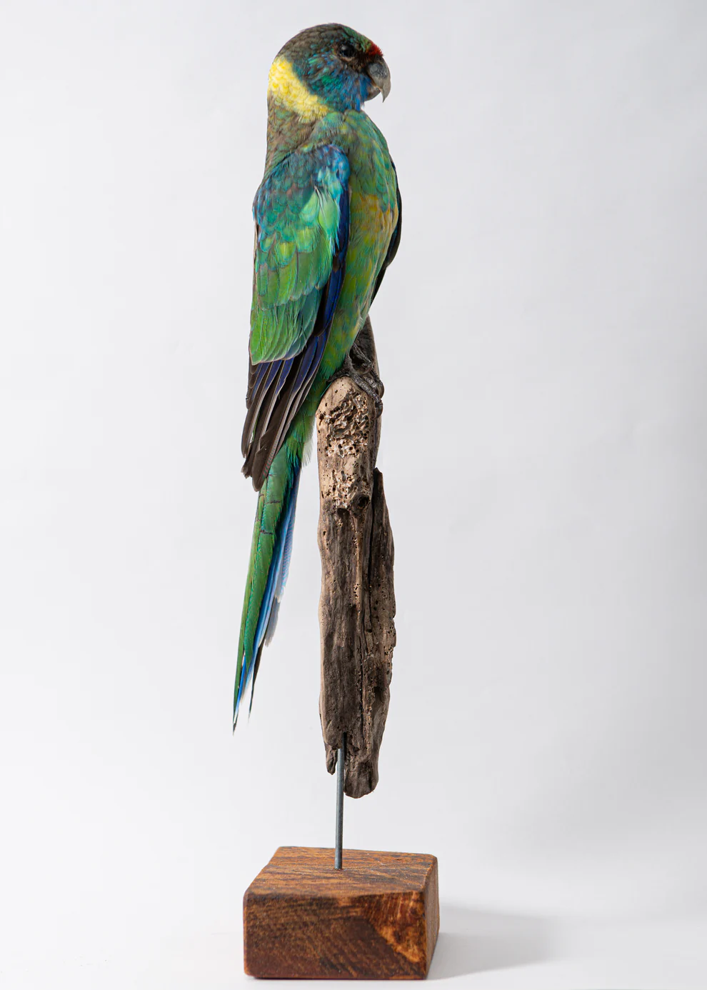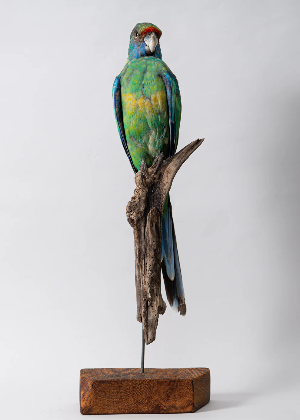 A contemporary Buln Buln Parrot taxidermy mount. This taxidermy bird is in excellent shape and would be a great addition to any taxidermy collection.
