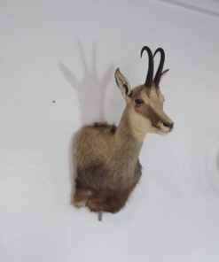 The total mount dimensions are 24″ high/tall x 12″ broad x 20″ deep. Each horn has a base of 3 4/8 inches and a length of 8 5/8 inches. Mounts can be supported by a pedestal base or a single fastening. Purchase this taxidermy for your house, workplace, cabin, or lodge.