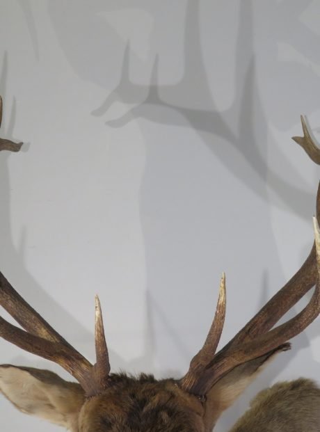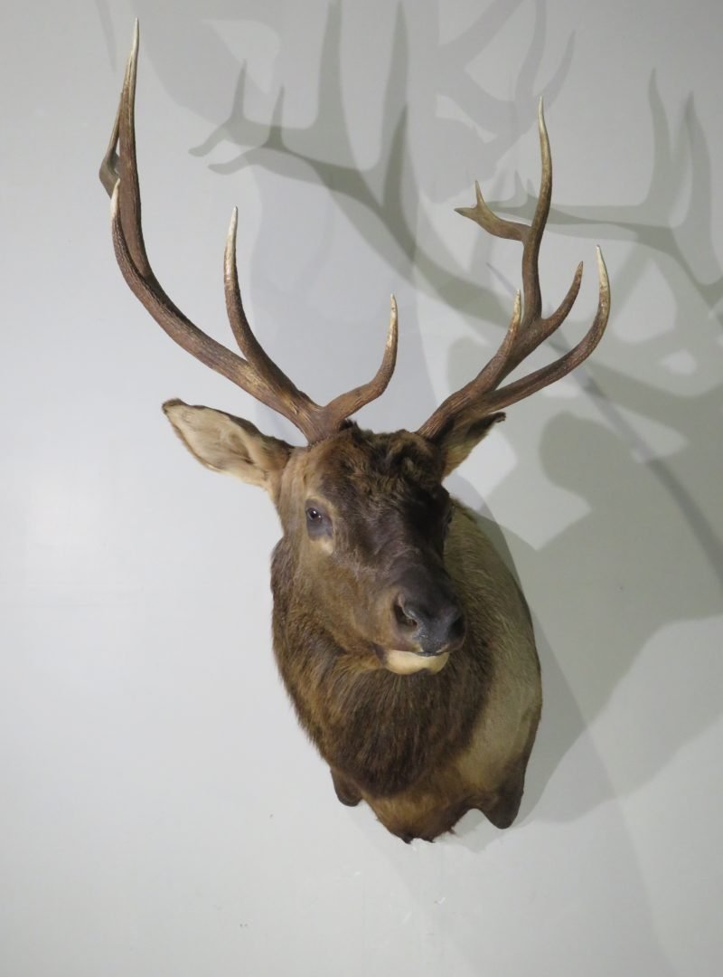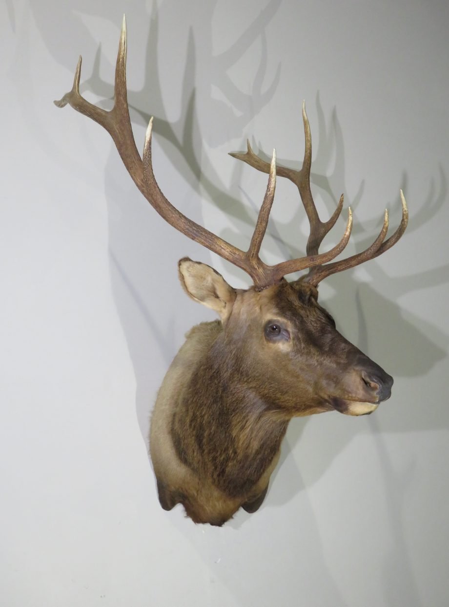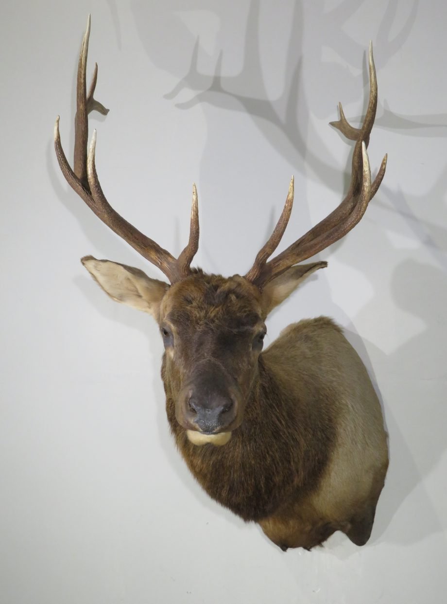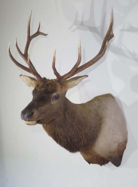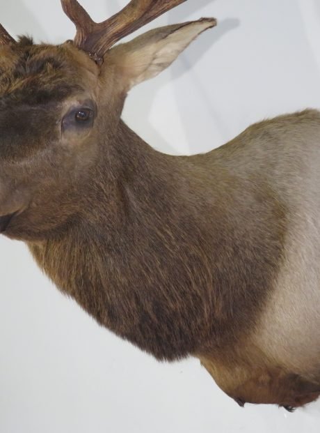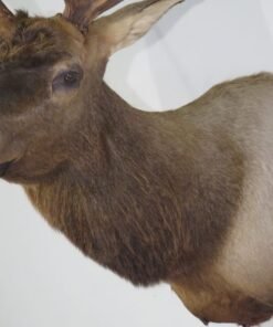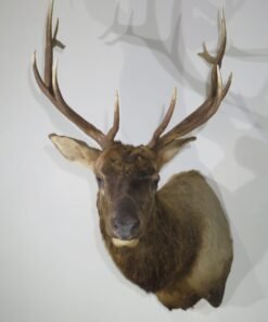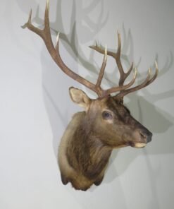 This male elk from Northern Montana looks fantastic. He is from the Northern Rocky Mountains’ Mission Range. An attractive point bull with good size, mass, and length (6 x 6 rack). In this stance, the head is forward and rotated to stare left into the room. This bull is a formidable presence in any space because of its excellent rack and better-than-average body bulk. Each beam is more than 45 inches in length.