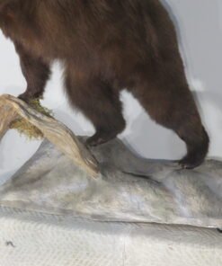 Among all the predators for display, bear mounts are among the most popular. The entire dimensions of this bear’s mount are roughly 59 inches long, 48 inches tall, and 36 inches deep. (Depth changes depending on the display angle.) To facilitate movement, it has two tiny casters beneath one end. Purchase this taxidermy to put on display in your house or cabin.