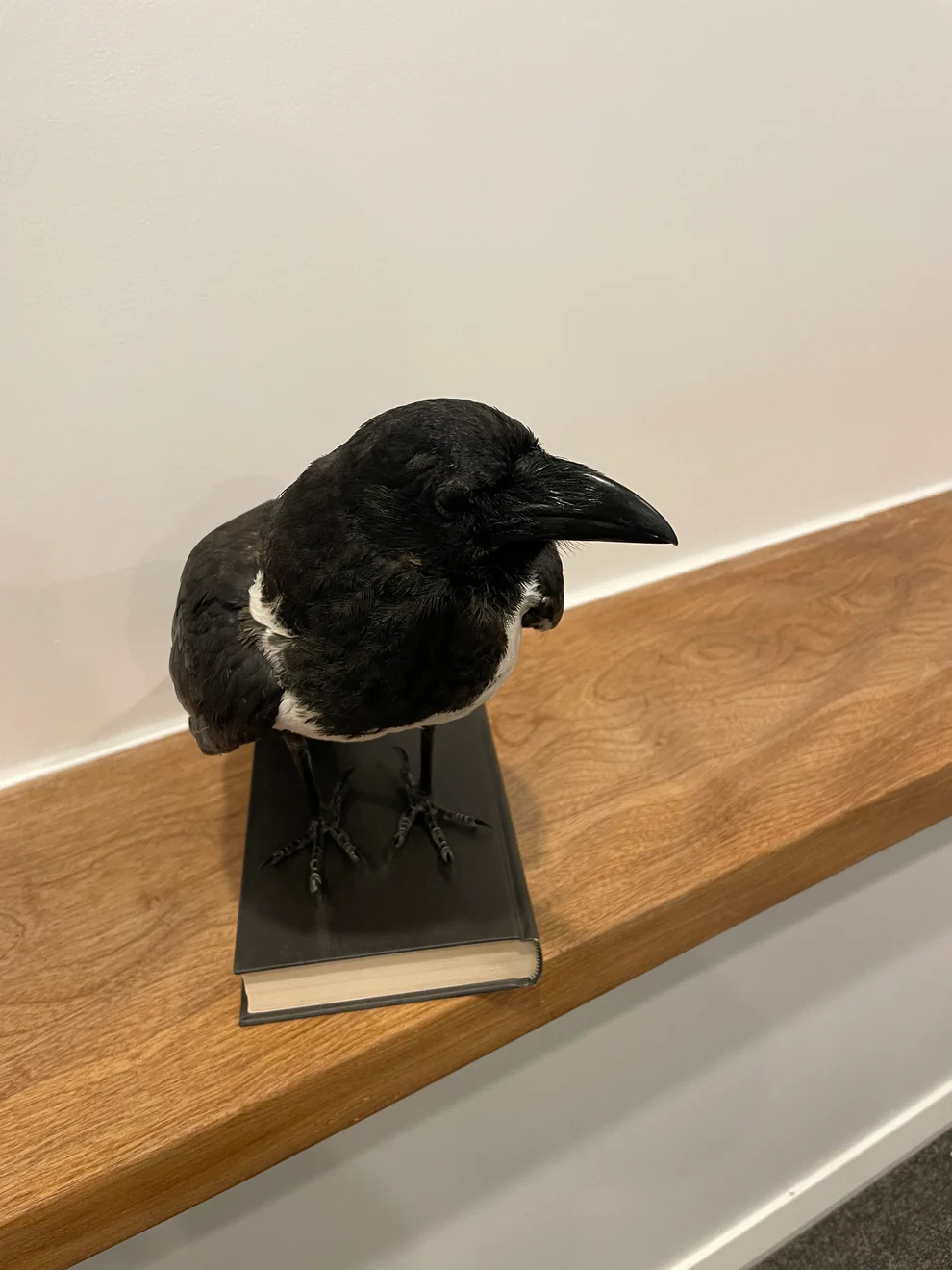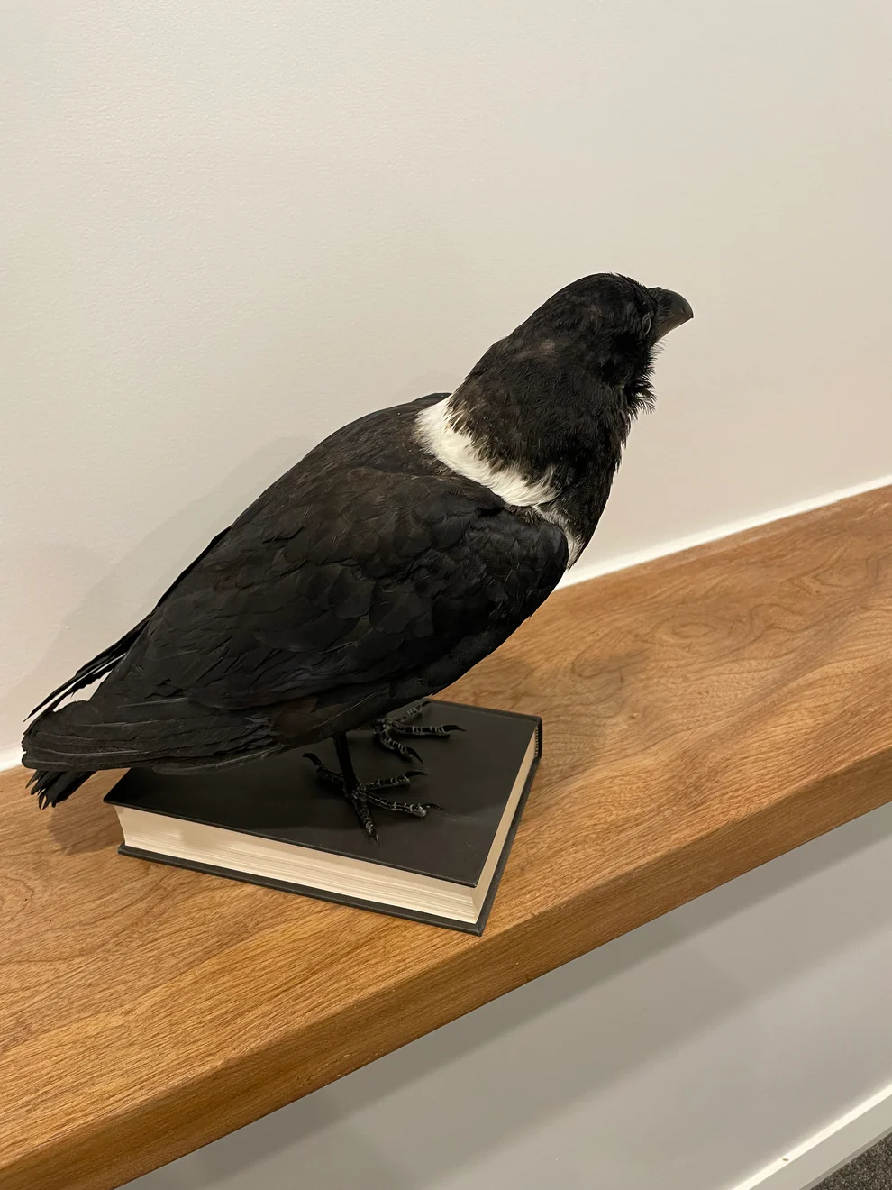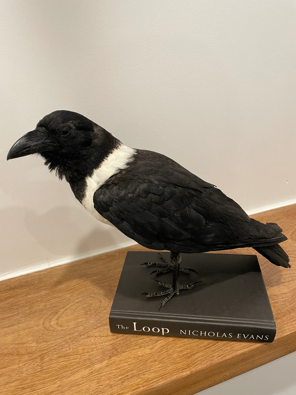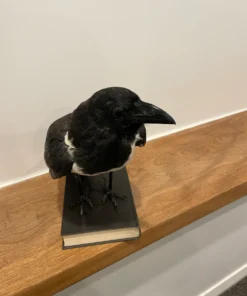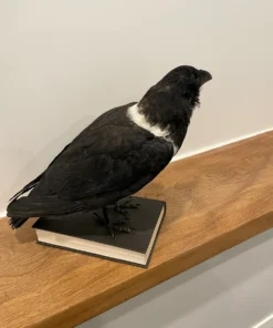A modern taxidermy mount of a pied crow. Although it is a little ancient, this taxidermied bird is still a magnificent specimen and extremely uncommon.