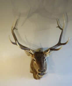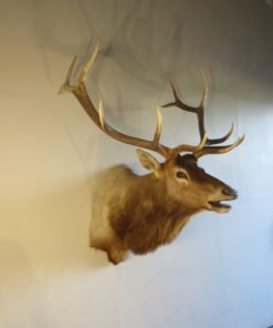 This is a stunning illustration of a Rocky Mountain elk. The huge bull has an inside spread of more than 42 inches and a 6 x 6 rack. This taxidermy item has been rated “Premier” due to its excellent workmanship, overall size, and attractiveness.