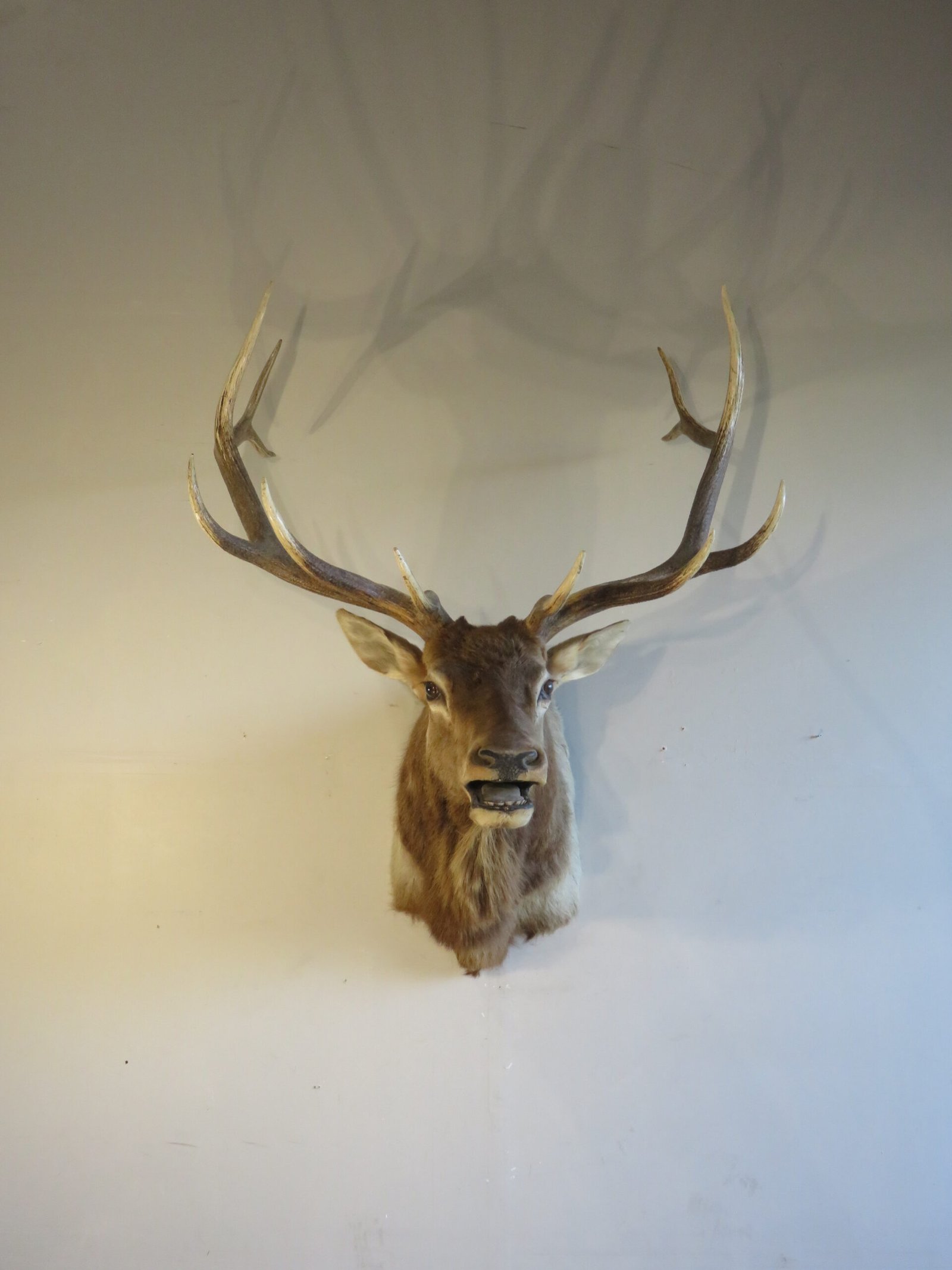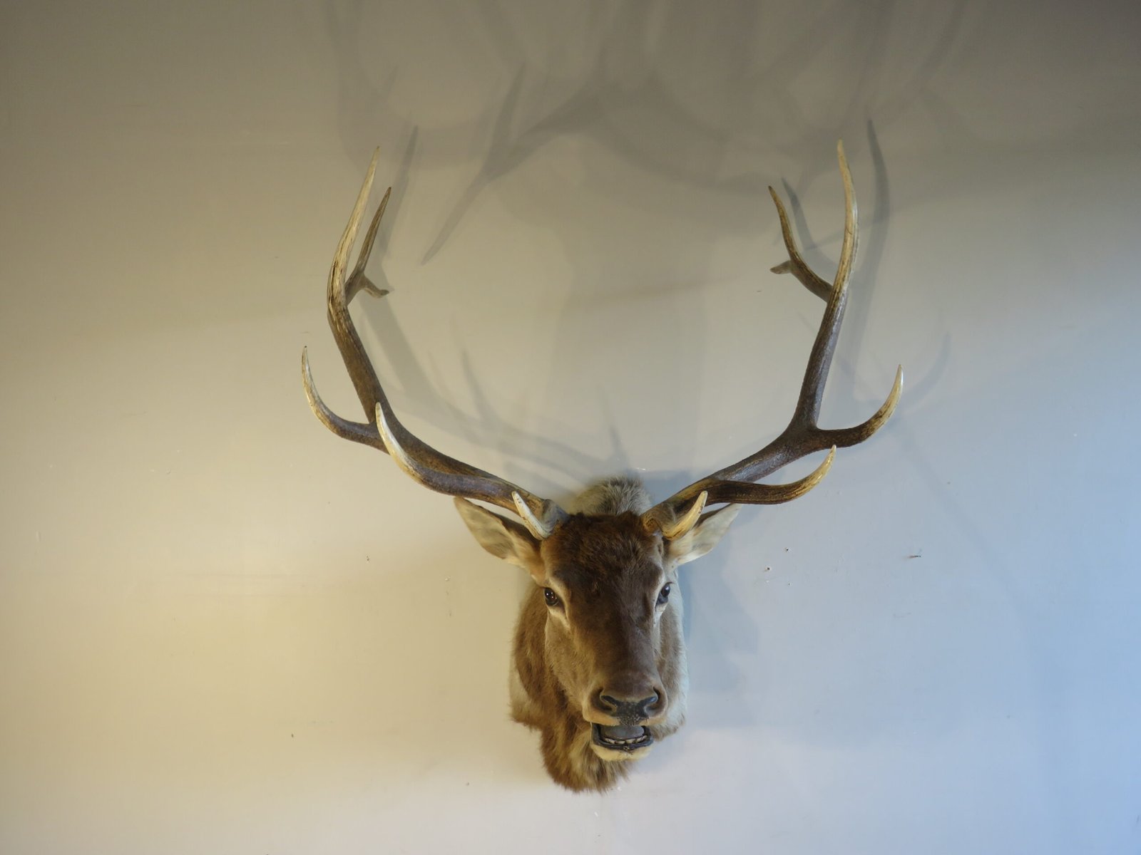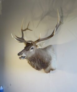 The total mount dimensions are 61 inches high, 45 inches wide, and 48 inches deep (from wall to nose). Use a single, secure fastening to display this taxidermy. Purchase this elk to put on display in your house, office, cabin, or lodge. Use it as a stand-alone presentation item or add it to a collection of large game species found in North America.