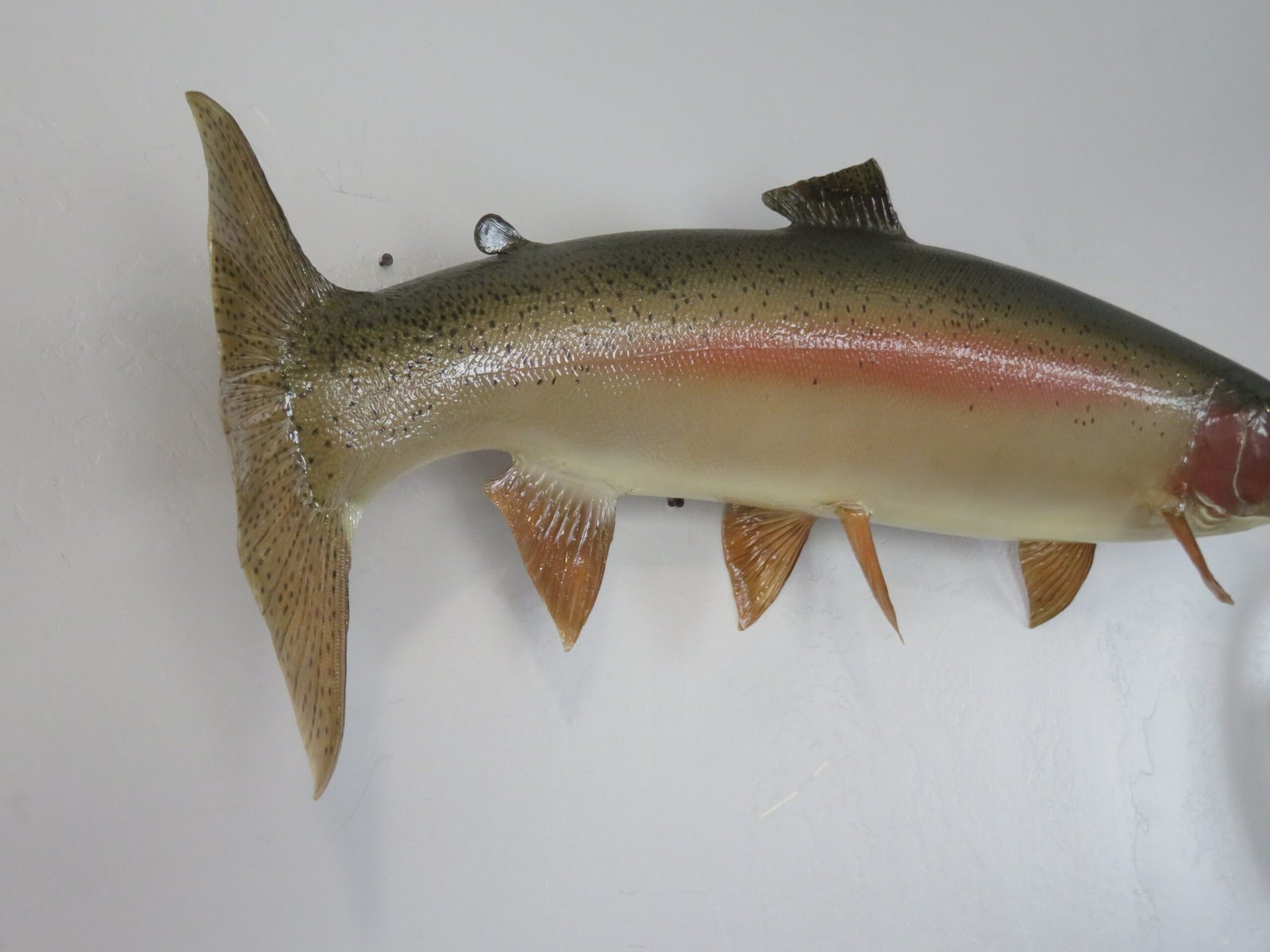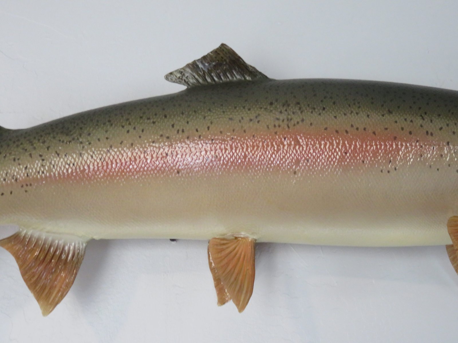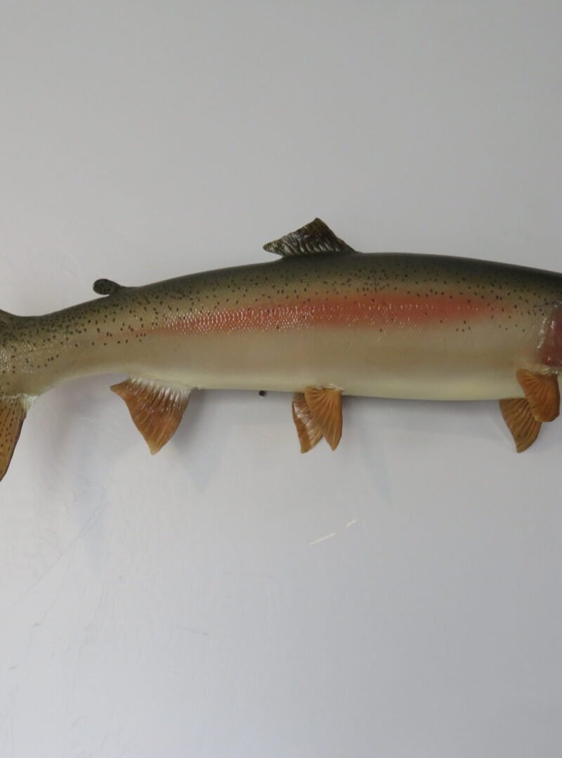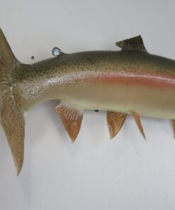 An excellent illustration of an Idaho Steelhead is this actual skin taxidermy mount! This female was 38 inches long and weighed 19 pounds when she was alive. Additionally, the workmanship on this mount is excellent. The body moves to the right in a swimming action with a small bow. “Premier” is the overall rating for this stunning mount.