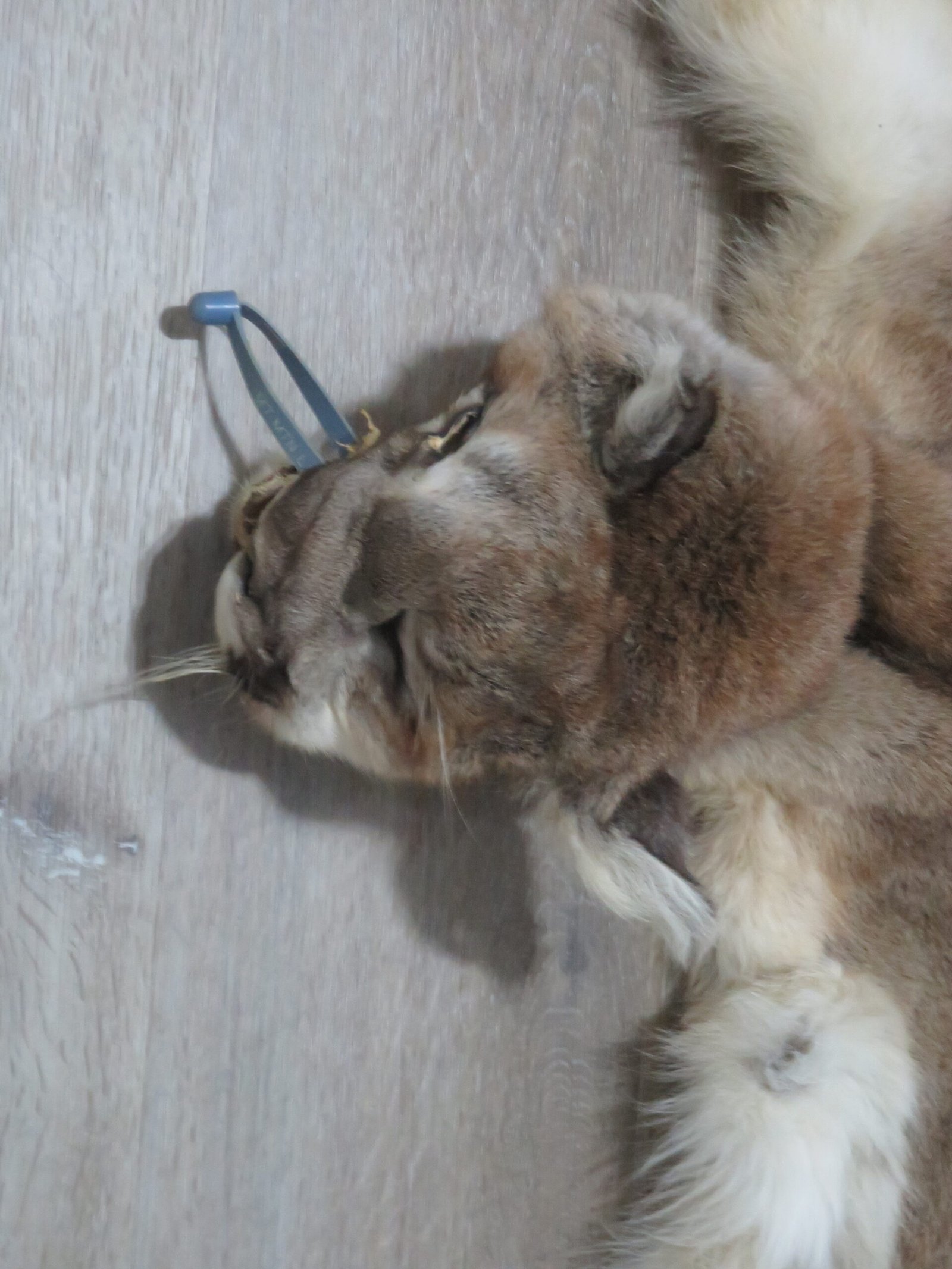 A gorgeous cat from Western Montana’s Bitterroot Mountains. Over a couch, floor, or railing, hang this skin from a peg, hook, or display. Skins are a fantastic way to add flair to outdoor décor. Include this in a collection or use it as a focal point in the lodge, office, man cave, or den.