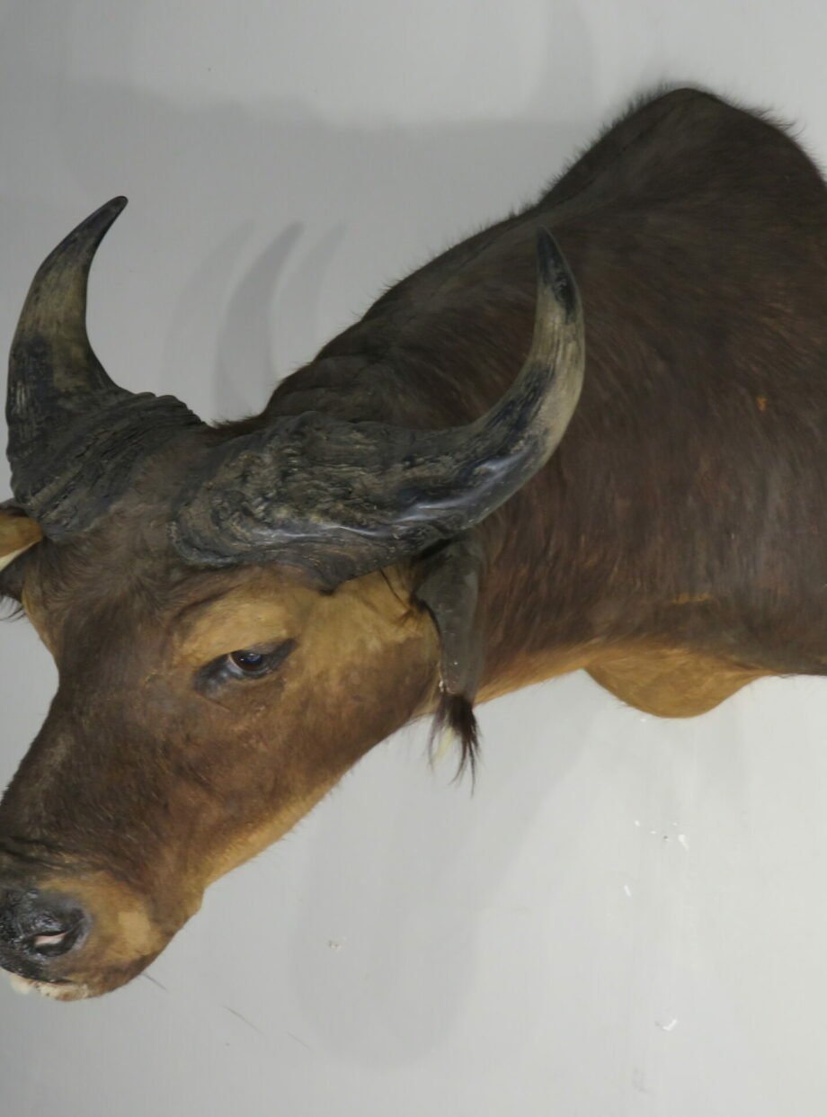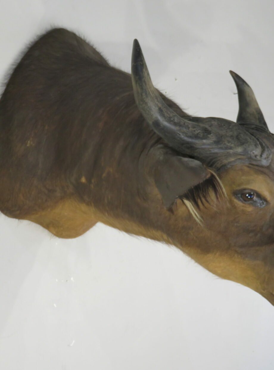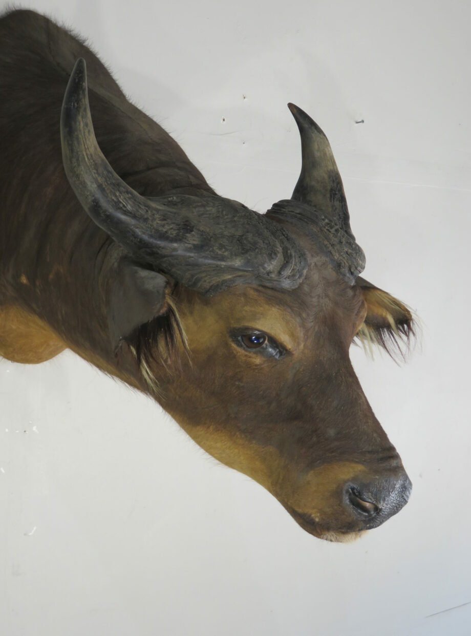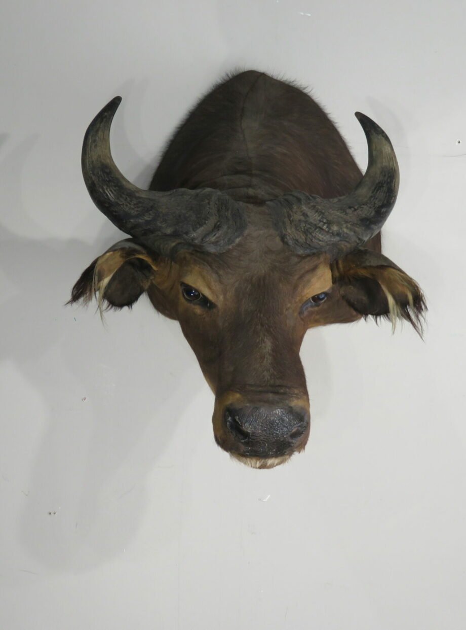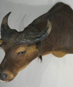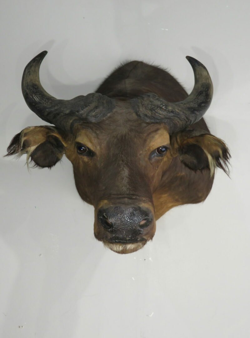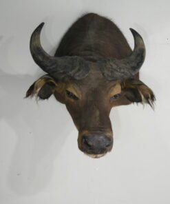 This water buffalo taxidermy mount looks fantastic. With the head tilted slightly to the left and gazing into the room, this pose has a “sneak” look. This horse has a distinctive appearance thanks to its attractive coat and light (nearly tan) to dark brown hair.