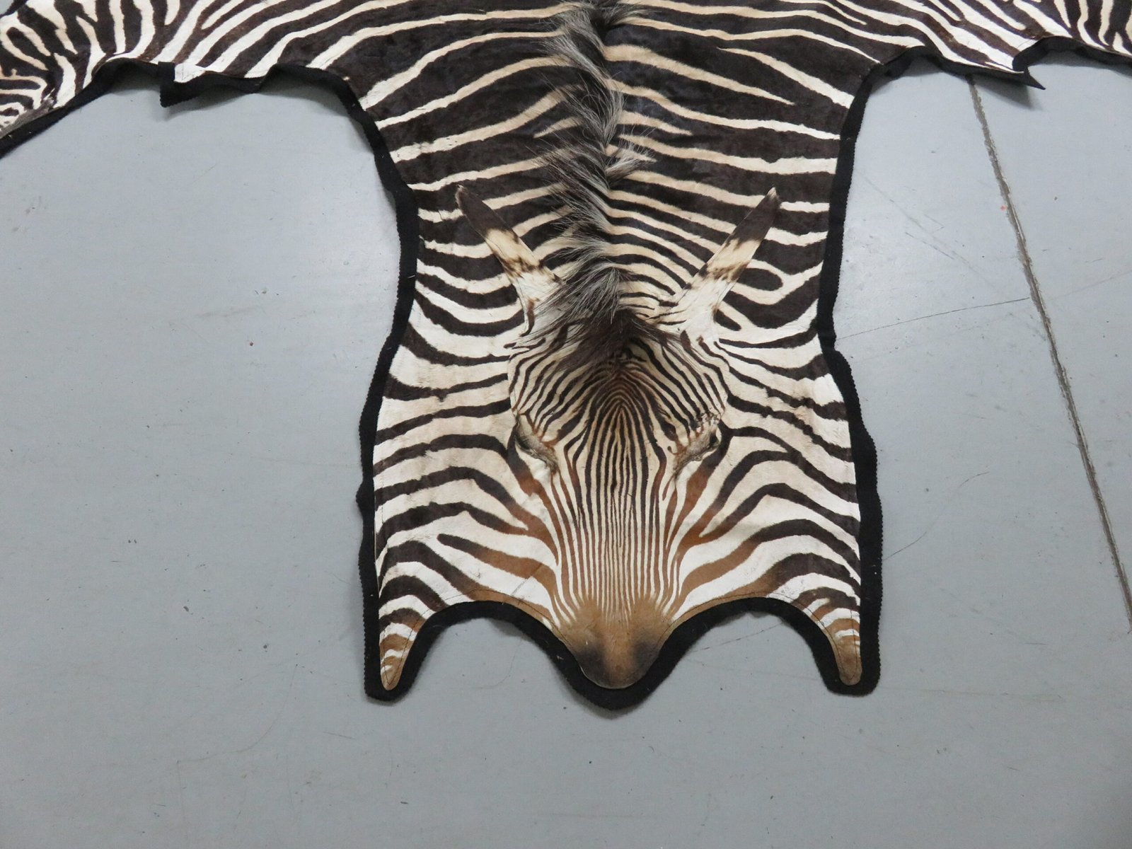 This gorgeous zebra rug can be purchased as a main item or added to your collection of African game species! The black felt lining is a great feature.